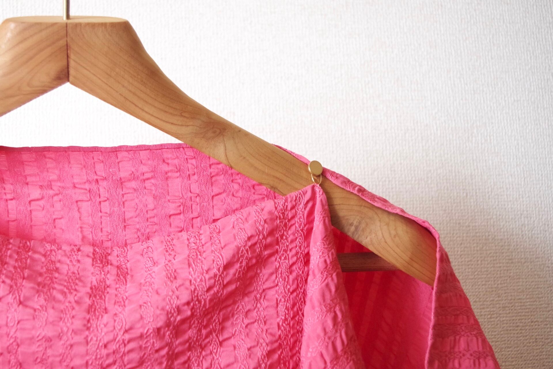 こちらはmetaruメタルタイプ。ボタンを二箇所で留めることにより、ブラウス風やポンチョ、カーディガンのような羽織など何通りにも着回しが可能です。